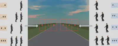 Thus, a MoreSMIRK sequence, i.e., ‘_ _ X; 0; Y _ _’, represents a crossing event that one pedestrian crosses from the left and one pedestrian crosses from the right with the zero offset. Please refer to here for full configurations of all sequences.