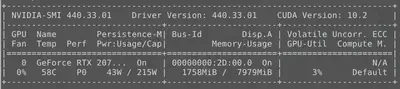 The OS of our testing computer is Ubuntu 18.04, the graphic card is Nvidia RTX 2070 Super.