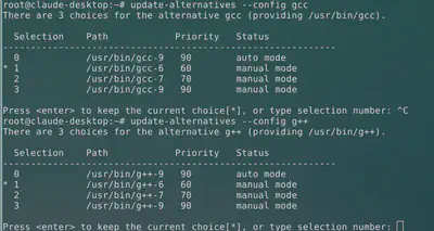update-alternatives --install /usr/bin/g++ g++ /usr/bin/g++-6 60